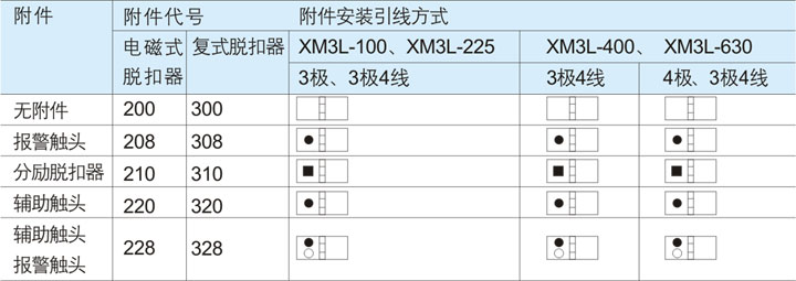 ◇ 訂貨時就注明產(chǎn)品型號、額定電流、內(nèi)部附件(見表)、極數(shù)、保護種類(配電保護,電動機保護)、數(shù)量等,如未注明特殊接線方式,我公司統(tǒng)一按板前接線供貨。
