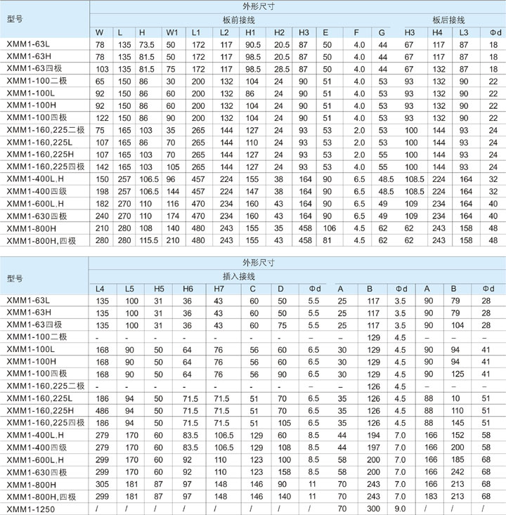 ◇ 例如:訂購XMM1-225L,180A,四極,帶欠壓和輔助功能,數(shù)量10臺訂單表示為:XMM1-225L/4370,180A,10臺。