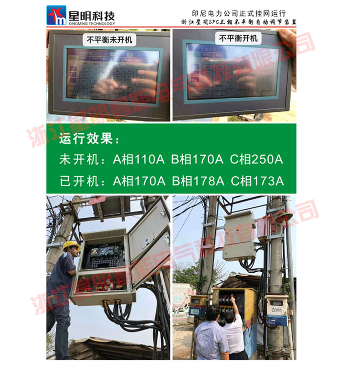 恭賀印尼電力公司采用浙江星明科技SPC三相不平衡自動調節裝置,通過治理三相電流不平衡,相電壓偏低和補償無功,從而優化電能質量。現場安裝圖如下: